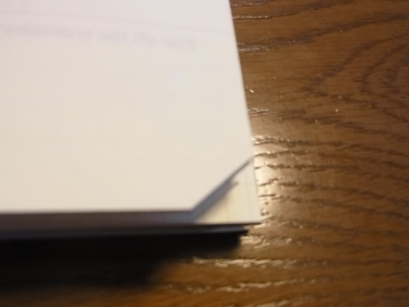 くっつけたことで厚くなってしまったので、しおり代わりに角を切り落とすのはますます重要。