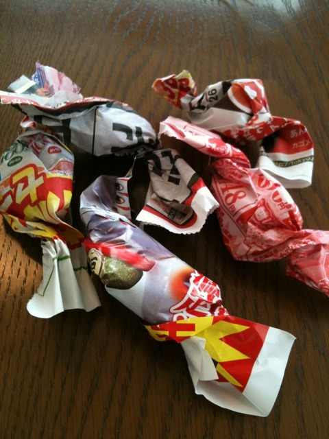 広告紙で作ったキャンディ(もっともっとあります。レジ袋1杯分くらい)