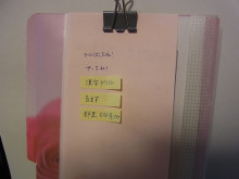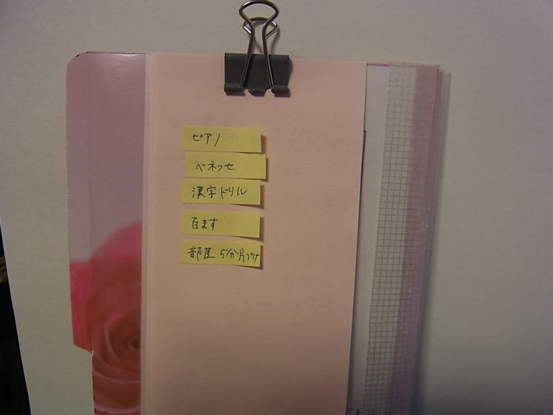 私の字で、娘がやるべきことを付箋に書き出しています。