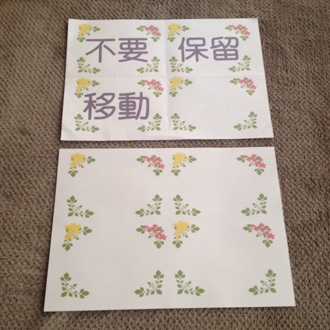 また前々回に、メルマガ読者の方に片づけモノ分類用の可愛いラベル(はがきサイズ)をお配りしました。