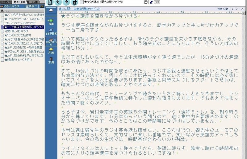 紙copiは、左側にファイル名の一覧が出て、そのファイル名をクリックすると、右側に内容が表示されます。これもまた超便利! ちょっと見づらいですが、こんな感じ。左側がタイトル一覧で右側が内容です。