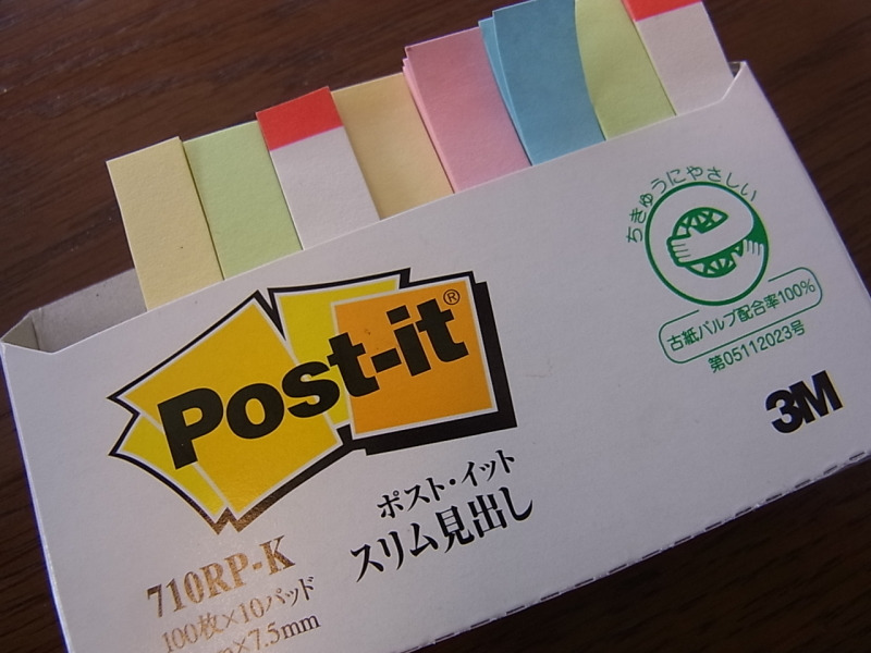 付箋は3Mの「ポストイット スリム見出し」というものを使っています。