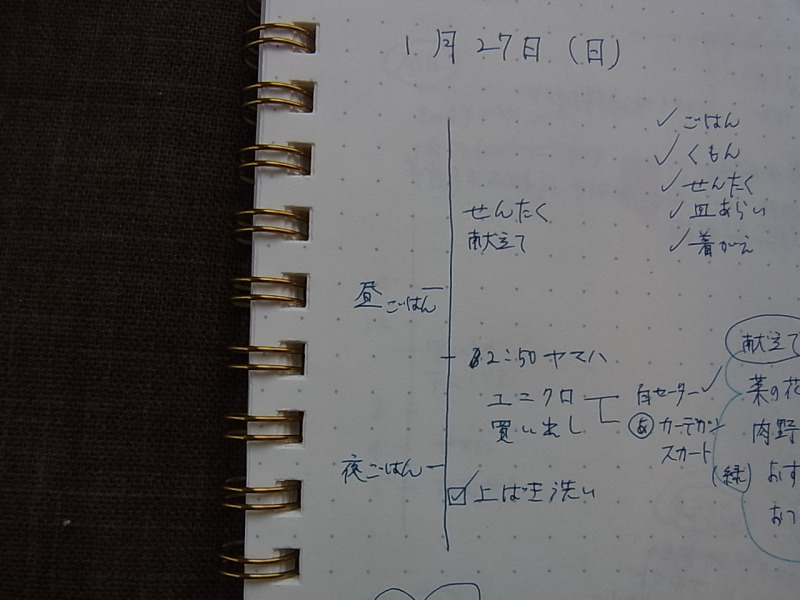 家事ノートに時間軸を書き込んで、「今日は午前中にこれをしとかないと間に合わない」ということがわかるようにだけしときます。