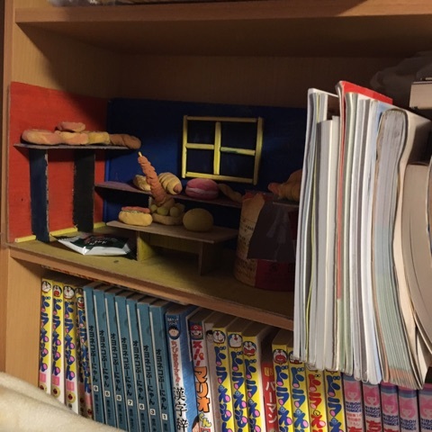 空いたスペースには、自分で作った紙粘土の作品が大事そうに飾られていました。