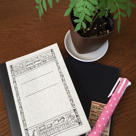 上の写真で、隣にある黒っぽいのは(実はネイビー)無印の「パスポートノート」。