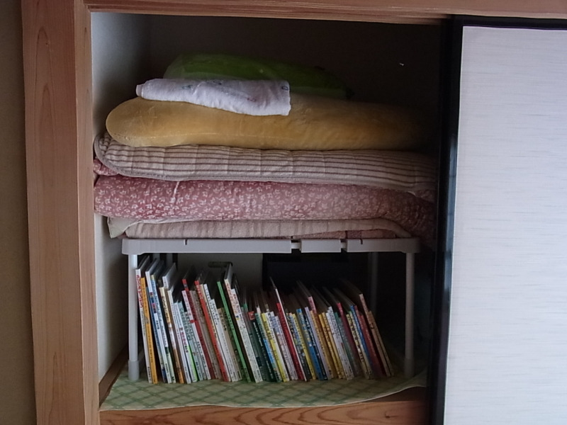 コの字型のふとんラックを入れて、その下に絵本を並べてあります。