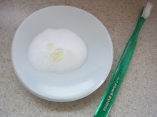 あ、時間をかけて磨くという意味ではなく、湿らせた重曹を歯ブラシで汚れに塗りつけたらしばらく放置。