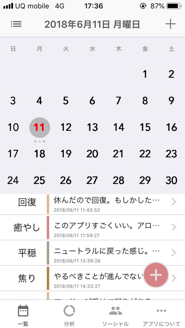 「気分ログ」といって、その時の気分や原因などを記録できるアプリです。