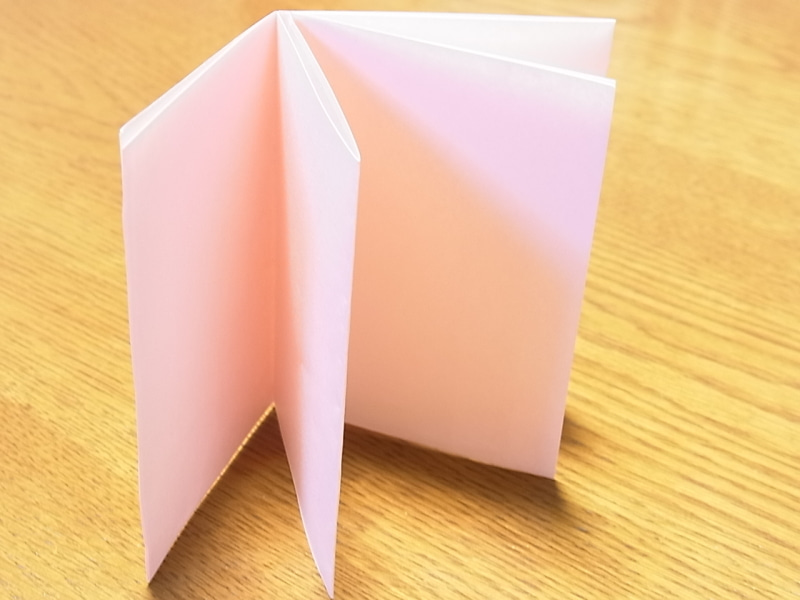 1ページは、コピー用紙を8ツ折りにした大きさです。コピー用紙と言えば普通A4なのですが、私はB5用紙を8ツ折りした大きさの方が好きで(使っているバッグのポケットに入れやすい)、B5のカラーコピー用紙を使ってます。旗