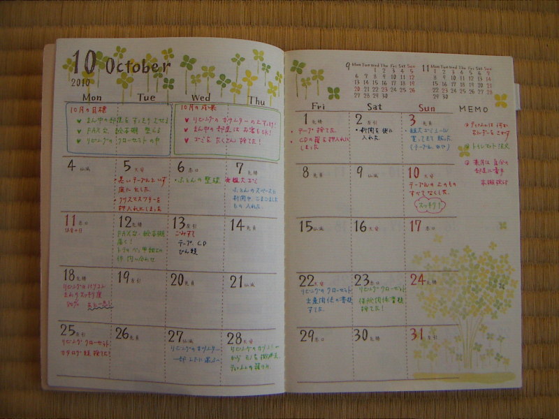 ただどこを片づけたかを記録するために、ある程度のスペースは必要でしょう。私はそのあたりも考えて、開くのが楽しくなる花のイラストの手帳を、片づけ専用にしています。