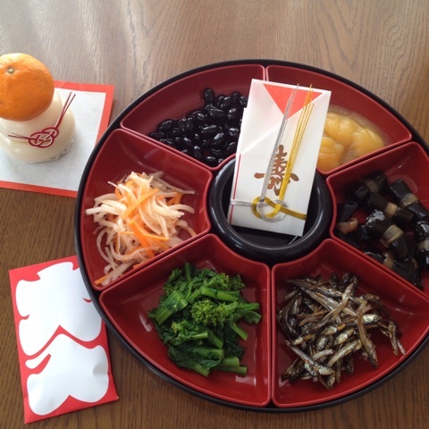 我が家の元旦の朝の食卓は、これにお雑煮とおしるこ、鶏肉のごぼう巻きでいただきました。