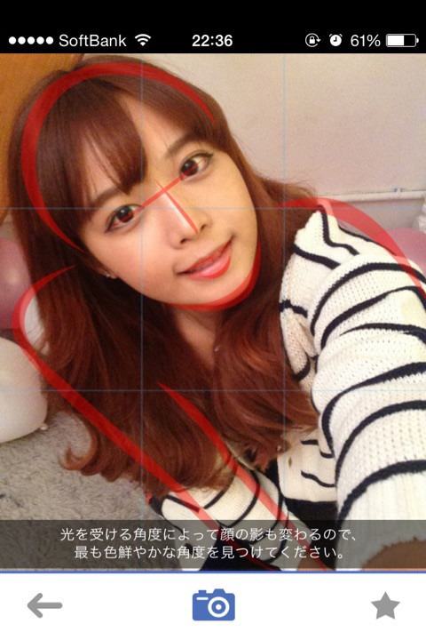 などと感心するばかりのヘタレな私が、自撮りの練習に重宝しているのが、「セルカガイド」というiPhoneアプリです。